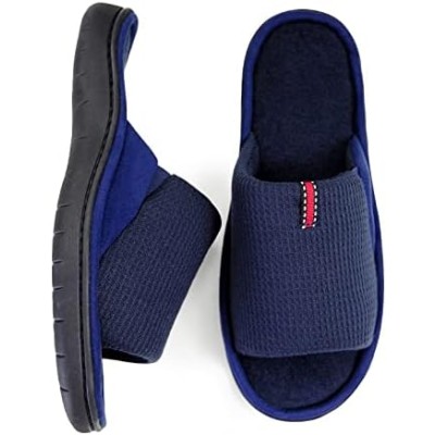 Slippers for Men Open Toe Soft Indoor Slip on Mens Slides Sandals with Memory Foam for Bedroom