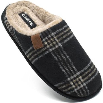 Mens Memory Foam Slipper, Slip on Cozy Slippers for Man, Warm Flannel Machine Washable House Slippers Indoor Outdoor
