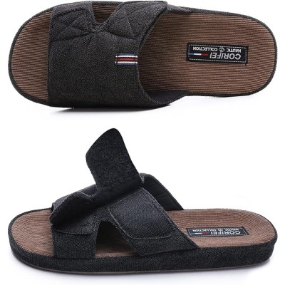 Men's Open Toe Slippers Adjustable House Slippers with Arch Support Cross Band Anti-Slip Indoor Outdoor Slides