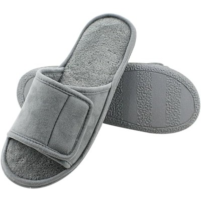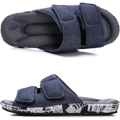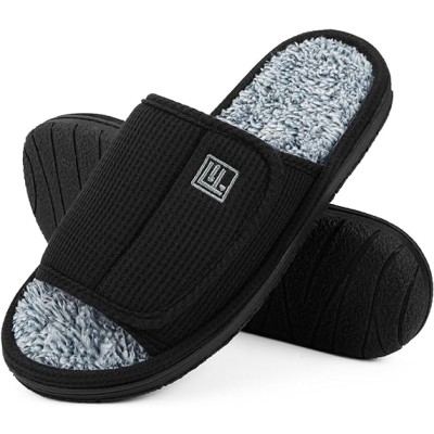 Adjustable House Slippers for Men Soft Open Toe Breathable Indoor Slip on Mens Slides Sandals with Memory Foam for Home Bedroom