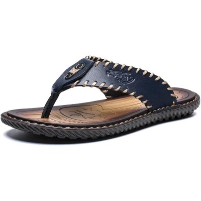 Mens Leather Flip Flops, Thong Sandals Comfort Slippers for Beach