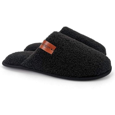 Mens Comfortable Warm Soft Fuzzy House Slippers Mules,Faux Fur Wool Fleece Lining Memory Foam Insole Non Slip Rubber Soles