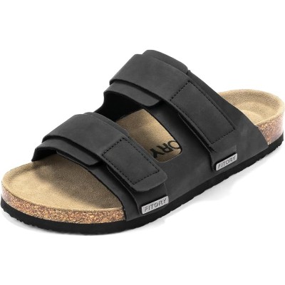 Men's Open Toe Slippers Adjustable House Slippers with Arch Support Cross Band Anti-Slip Indoor Outdoor Slides