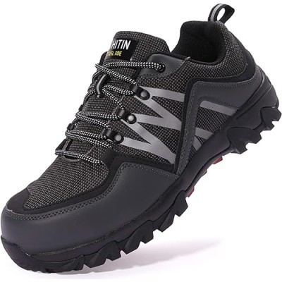 Men Hiking Shoes Waterproof Lightweight Outdoor Work Shoes Non-Slip Breathable Trailing Trekking Walking Sneakers Low Top Boots