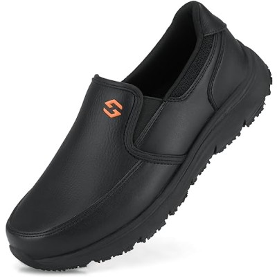 Men's Leather Non Slip Food Service Shoes, Water & Oil Resistant, Breathable, Lightweight Slip Resistant Shoes for Men