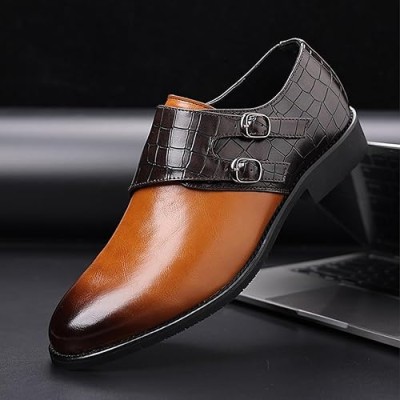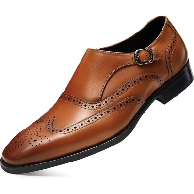 Men ’s Dress Shoes Genuine Leather Monk Strap Wingtip Formal Shoes Slip-On Loafer