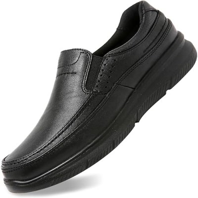 Men's Leather Non Slip Food Service Shoes, Water & Oil Resistant, Breathable, Lightweight Slip Resistant Shoes for Men